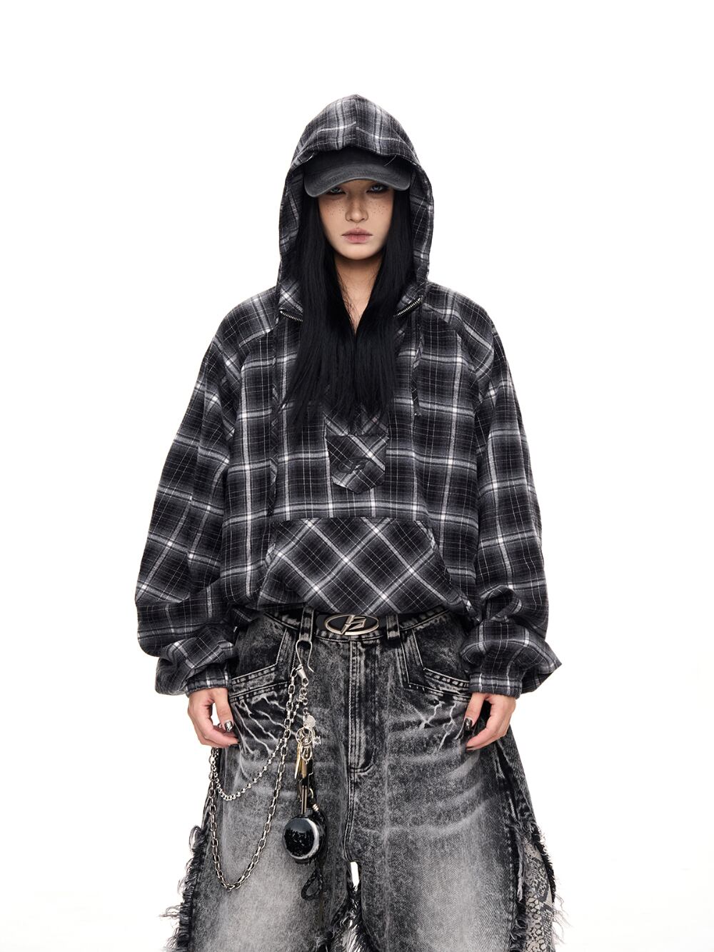 ◆仕様:チェック柄、フード付き
